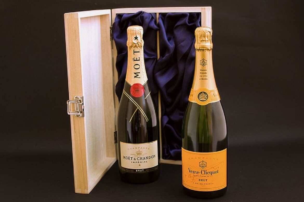 Και οι δύο παράγονται από σταφύλια διαφορετικών αμπελώνων. Τουλάχιστον 60 διαφορετικά αμπελοτόπια για τη Veuve Clicquot και περισσότερα από 100 για τη Moët. Είναι και οι δύο μη vintage, που σημαίνει ότι τα σταφύλια διαφορετικών ετών παίρνουν μια θέση στο μείγμα.